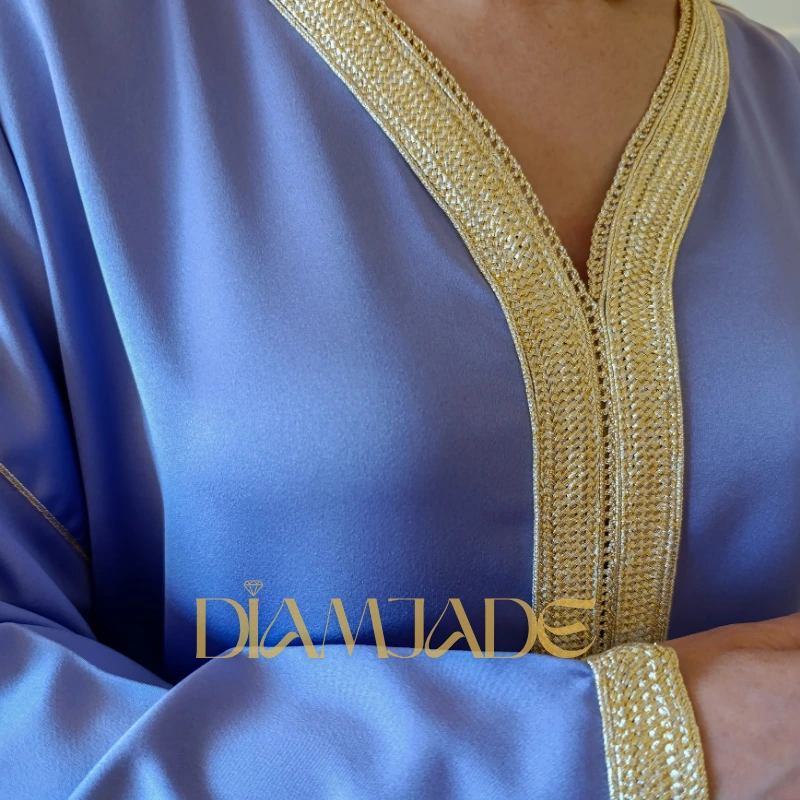 Le Caftan Makhzani mauve clair s’impose comme la tenue idéale pour les occasions spéciales : soirées de fiançailles, mariages, cérémonies de l’Aïd ou de Ramadan, brunchs élégants, ou même un dîner chic en famille. Il convient parfaitement aux mariées, mères de mariés, ou toutes celles qui veulent marquer les esprits par leur présence majestueuse.