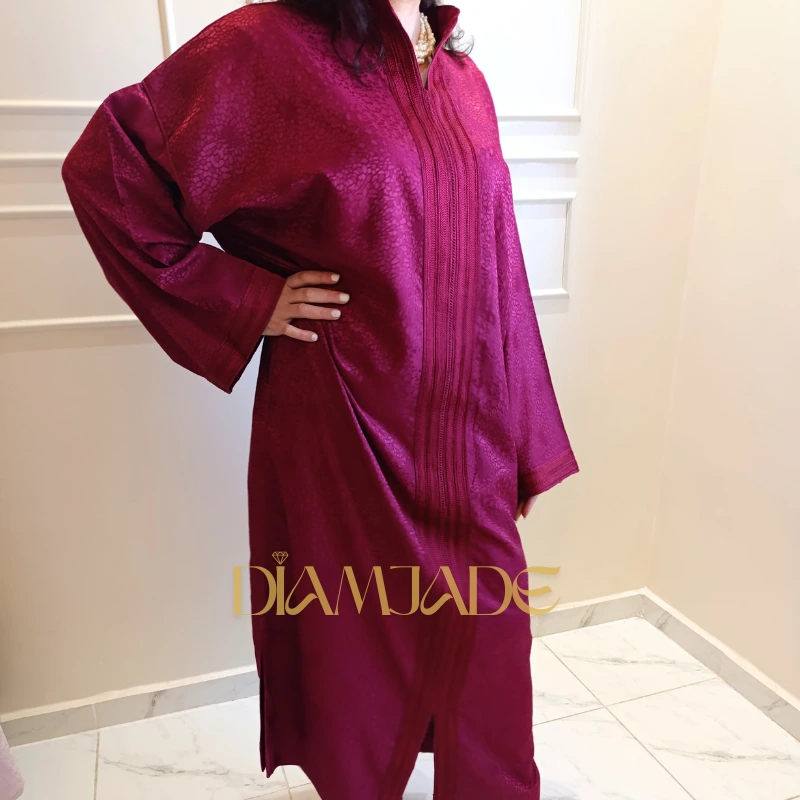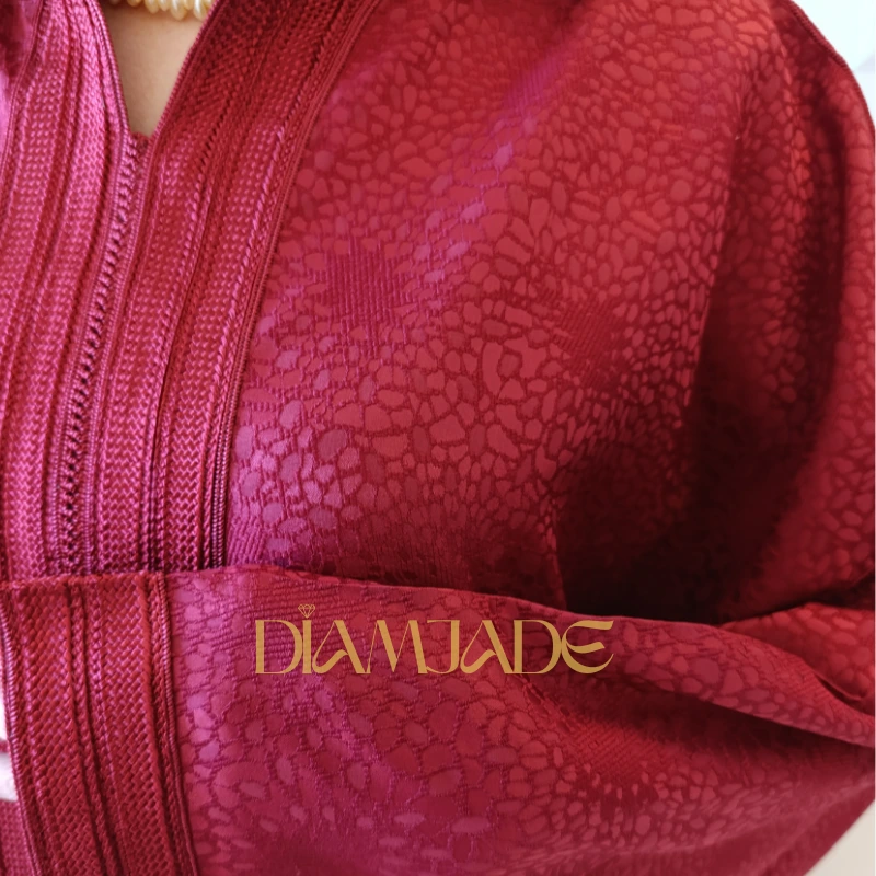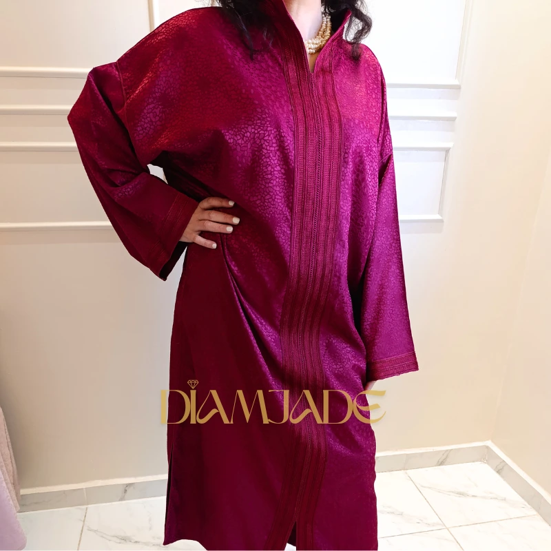 Soyez le premier à laisser votre avis sur “Caftan Makhzani rouge bordeau en Brocart Satiné”