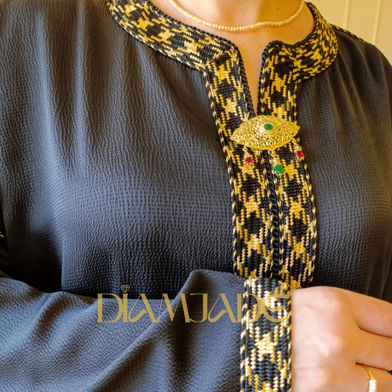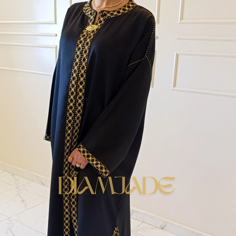 Offrez-vous l’élégance du patrimoine marocain avec le Caftan Royal Élégance – Noir et Dore
